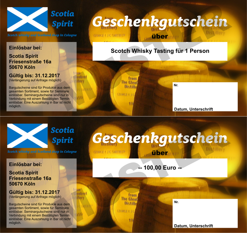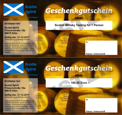 Geschenkgutscheine von Scotia Spirit